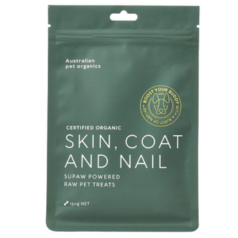 A potent Skin, Coat and Nail supplementary treat (150g net weight) with vitamins for shinier coats, healthy skin and strong nails. These Certified Organic treats will help your buddy look - and feel - a million bucks.