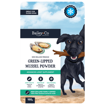 Our Freeze-Dried Green-Lipped Mussel supplement is derived only from live mussel meat (i.e. no shell) and is quite uniquely cold-opened so you know that when you choose Bailey+Co your beloved pet is getting the most concentrated dose of nutrient-rich lipids, omega 3 fatty acids and vitamins possible.