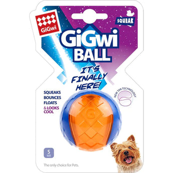 Gigwi ball small 1 pack is a rubber dog toy that makes omits squeaking noise, which is durable enough for indoor and outdoor activities such as fetch or swimming great way to interact and exercise.