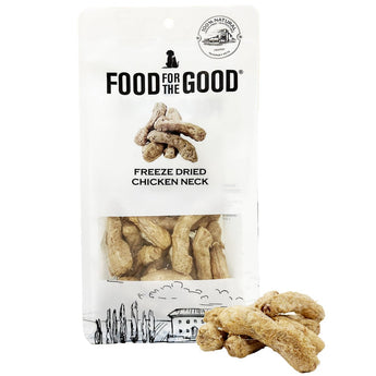 Food For The Good Freeze Dried Chicken Neck is an excellent source of protein, suitable for both dogs and cats. Made from 100% chicken neck, the treats are gently Freeze Dried to retain all the nutrients and flavor your pet craves! These treats are grain-free, gluten-free, without any added preservatives and antibiotics.