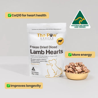 25% OFF: The Paw Grocer Black Label Freeze-Dried Diced Lamb Hearts Treats For Dogs & Cats