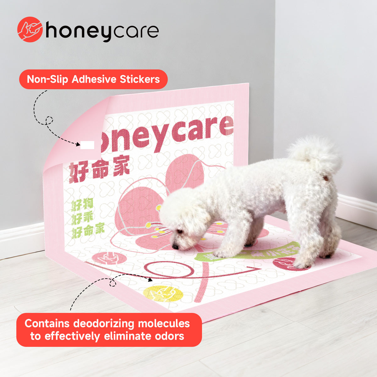 Additionally, our pads feature Japan's advanced antibacterial polymer, incorporating patented technology that releases a pleasant aroma upon contact with water. This polymer can absorb water up to 60 times its own weight. Thanks to these seven layers of protection, our L size pee pad can absorb a remarkable 2400ml of liquid, M size can handle 1200ml, and S size can absorb 600ml, all without any leakage.