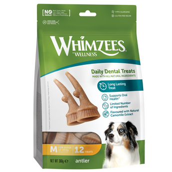 Visit Whimzees Website to know more about Whimzees Antler Medium Natural Dental Dog Chews (12Pcs)