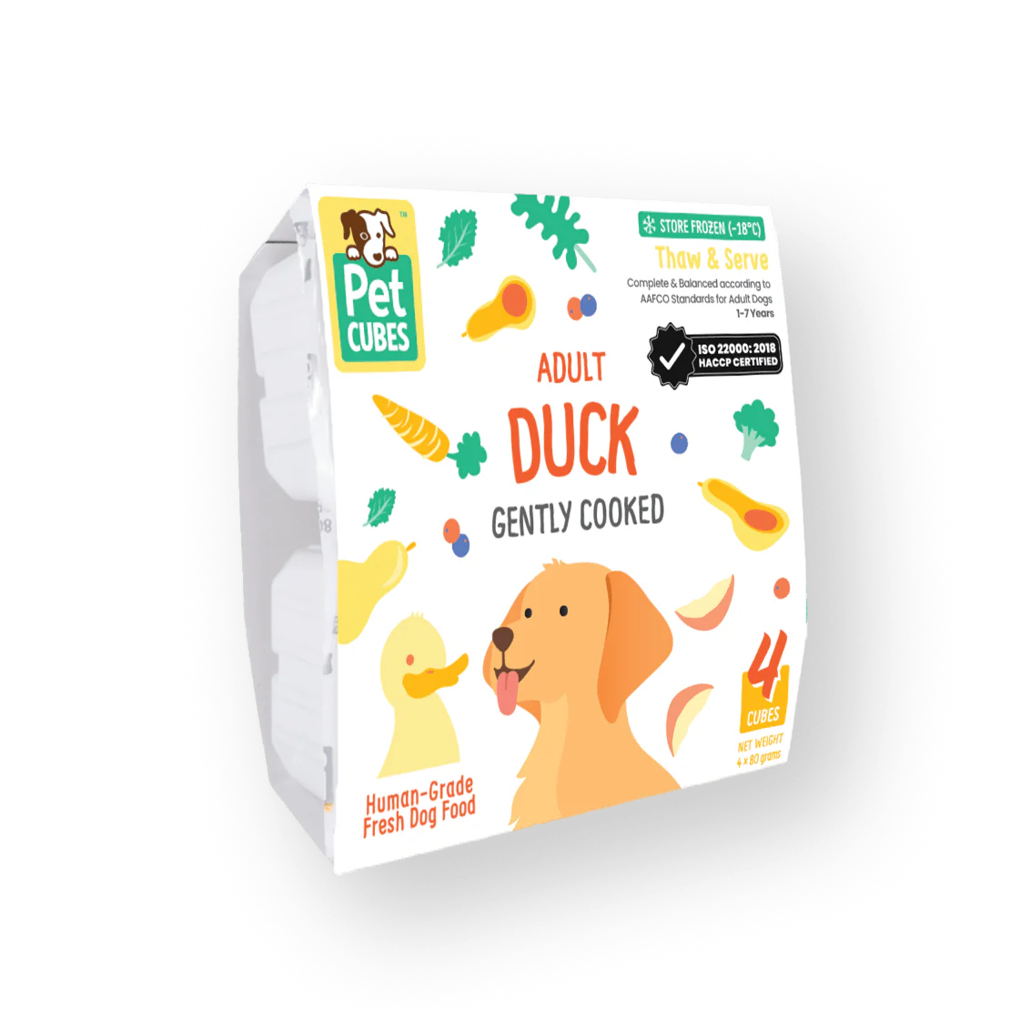 Visit Pet Cubes Website to know more about Pet Cubes Complete Gently Cooked Duck Fresh Food