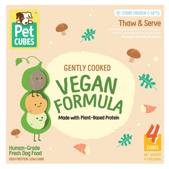 Each Vegan cube is packed with a powerhouse of antioxidants and disease-fighting compounds, ensuring your dog receives the essential nutrients they need for optimal health. Whether you're following a vegan diet for your dog due to allergies, sustainability concerns, or personal values, PetCubes is here to support you on your journey.