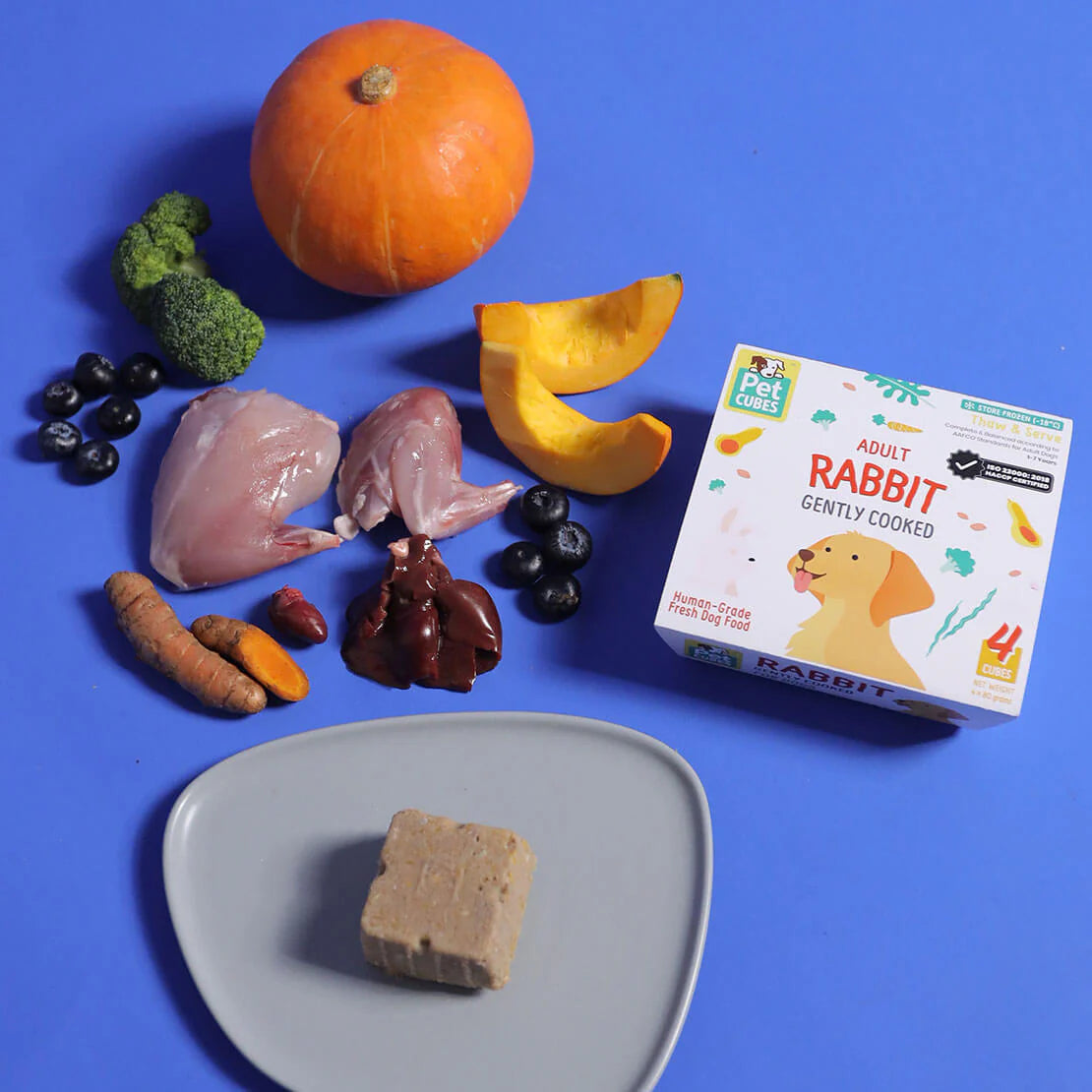 Visit Pet Cubes Website to know more about Pet Cubes Premium Complete Gently Cooked Rabbit Fresh Food For Dogs