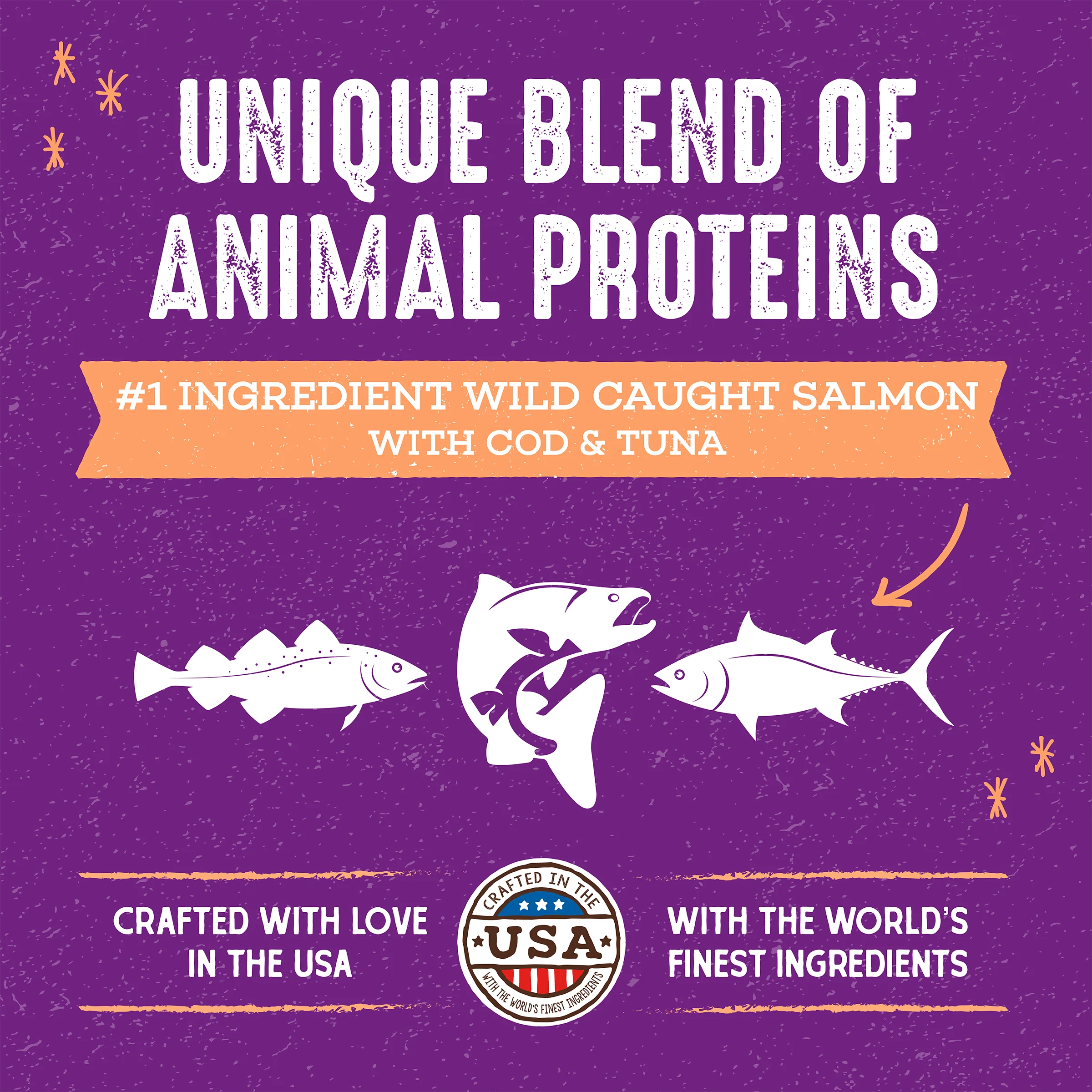 - Unique blend of responsibly sourced salmon, cod, and tuna
