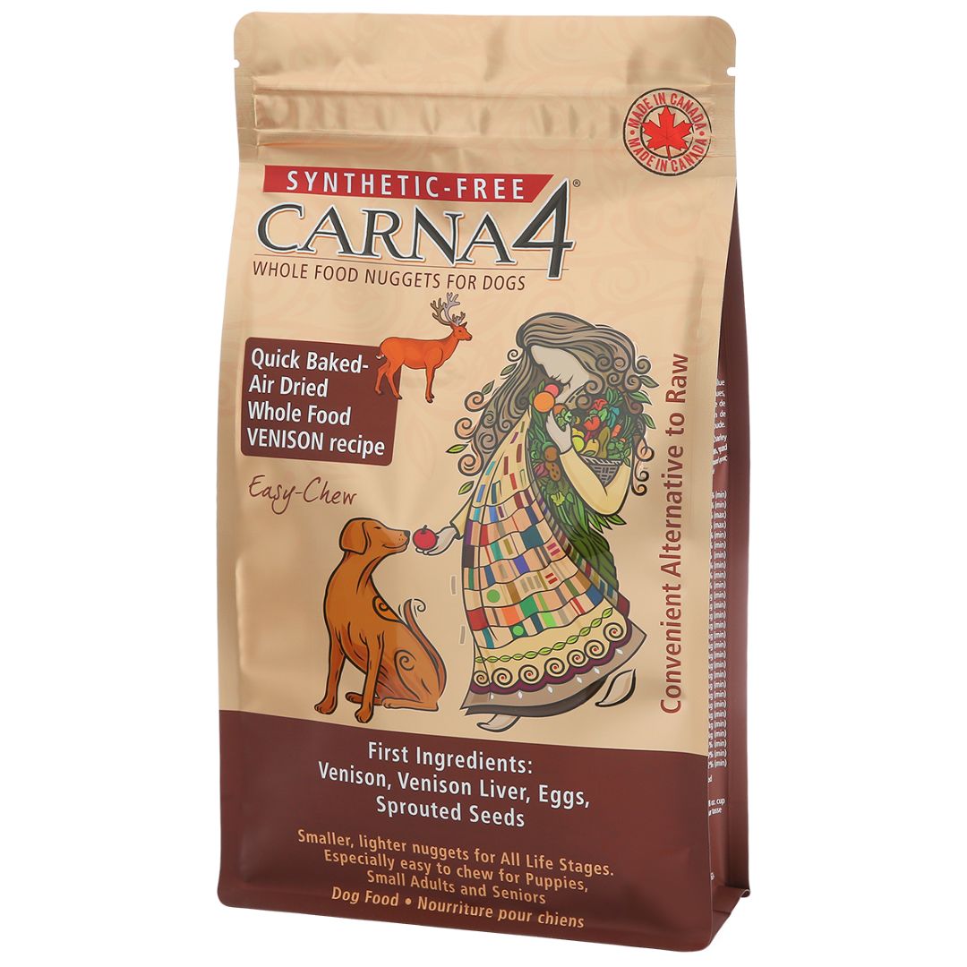 Visit Carna4's Website to know more about Carna4 Grain Free Quick Baked Air Dried Easy Chew Venison Nuggets Dry Dog Food