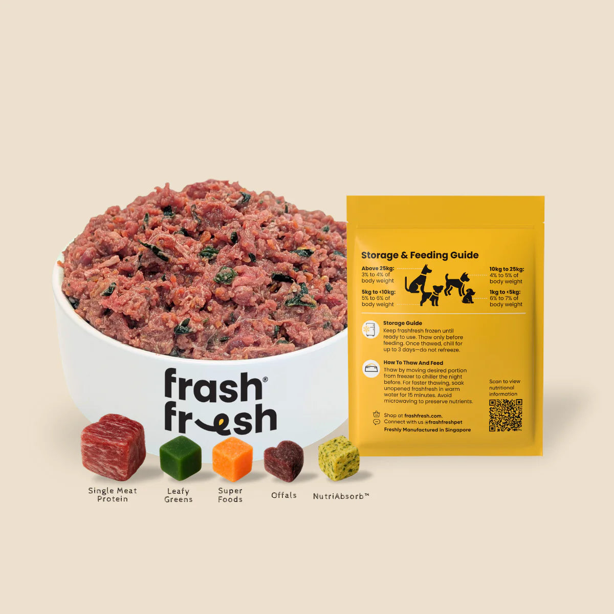 Visit frashfresh website to know more about frashfresh Raw Dog Food With NutriAbsorb™ (Low-Allergen Beef)