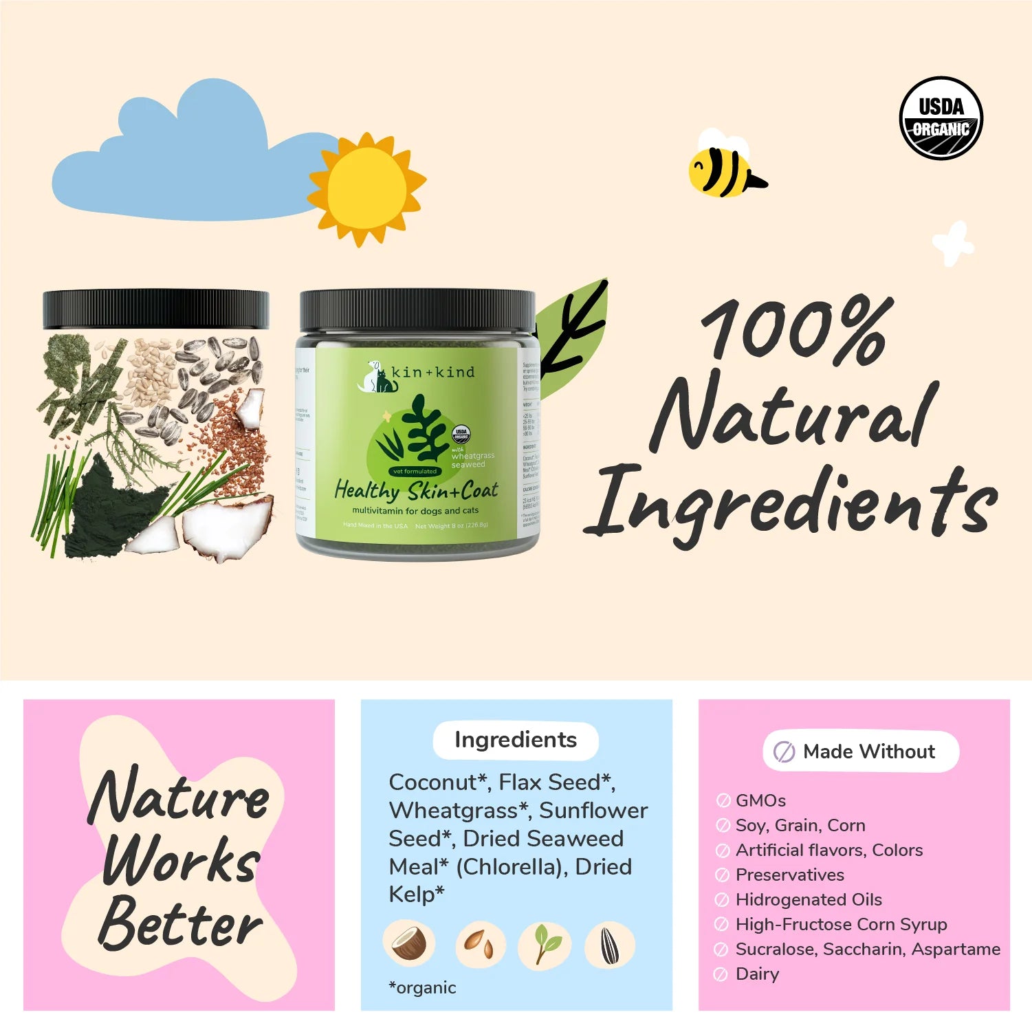 Kin + Kind Organic Healthy Skin & Coat Multivitamin Supplement For Pets