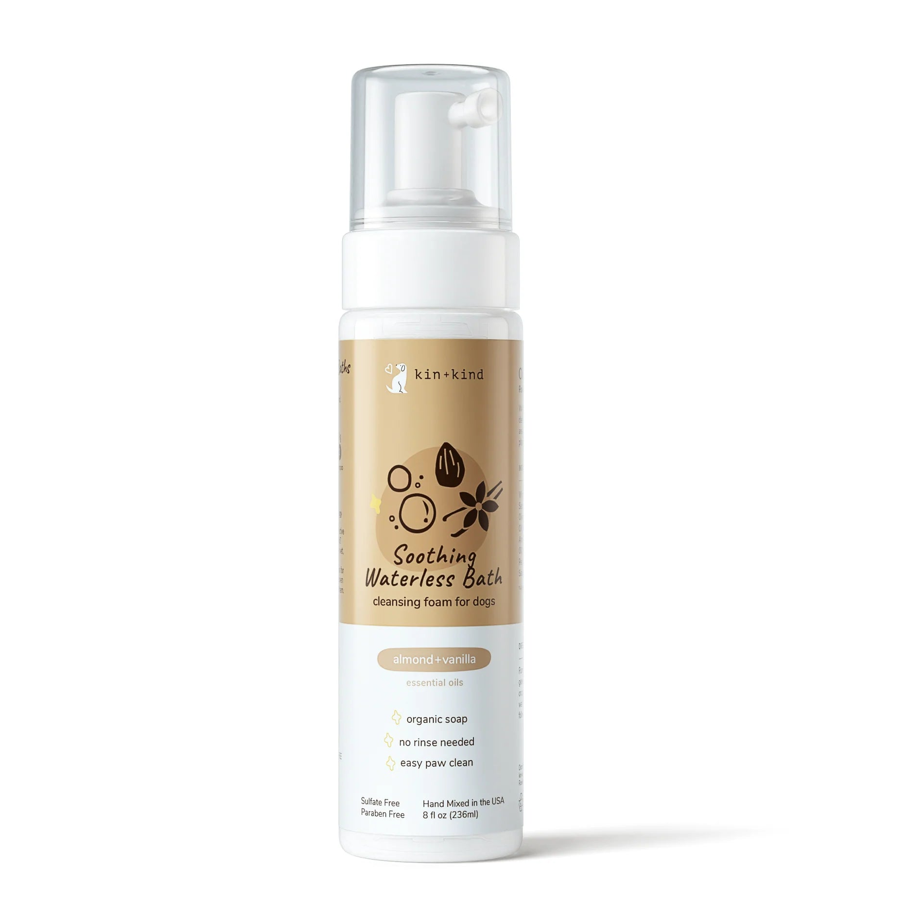 Visit Kin + Kind Website to know more about Kin + Kind Soothing Almond + Vanilla Waterless Bath For Dogs