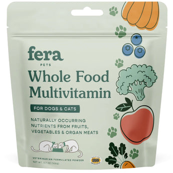 Whether you are feeding dry kibble, wet food, fresh or raw food, Fera’s Whole Food Multivitamin is a blend of nutrients designed to complement any diet.