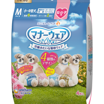 Unicharm Manner Wear Super-Small/Small/Medium/Large Female Dog Diaper Trial Pack (4Pcs)