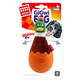 Visit GiGwi website to know more about GiGwi Egg Wobble Fun Brown Duck With Squeaker Plush/TPR Toy For Dogs