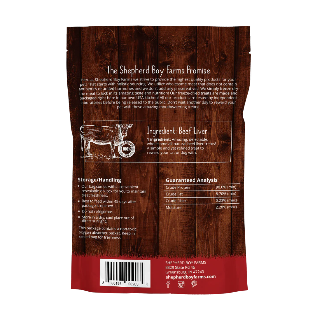 - Single Ingredient: 100% pure beef liver, sourced and freeze-dried on Shepherd Boy’s Indiana farm