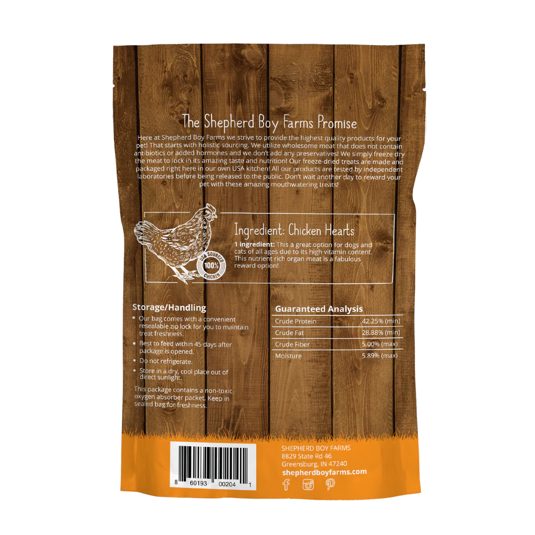 Visit Shepherd Boy Farms website to know more about Shepherd Boy Farms Freeze-Dried Chicken Hearts Treats For Dogs & Cats