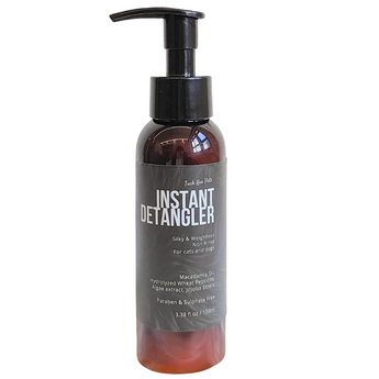 Silky & weightless non-rinse instant detangler for cats and dogs containing Macadamia Oil, Hydrolyzed Wheat Peptides, Algae extract, Jojoba Esters. Free from Parabens & Sulphates.