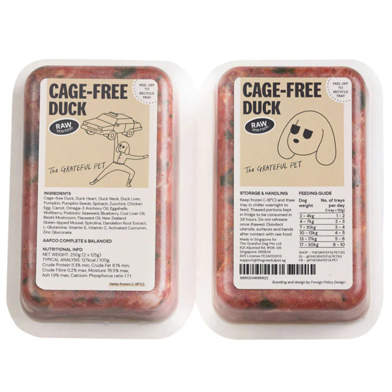 This delicious raw duck meat dog food is freshly made in Singapore. It contains hormone-free cage-free duck, which is rich in lean protein, essential nutrients, and healthy fats that support muscle development, skin health, and overall vitality. According to Traditional Chinese Medicine (TCM), duck is a “cooling” meat, which helps balance your dog’s internal heat, making it perfect for calming inflammation and promoting better digestion.