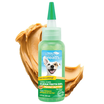 Give your dog a cleaner mouth, fresher breath, and healthier gums—without the hassle of brushing. TropiClean Fresh Breath Clean Teeth Peanut Butter Gel combines the irresistible taste of peanut butter with proven dental care benefits. This easy-to-use gel helps remove plaque and tartar, supports gum health, and freshens breath for up to 12 hours.