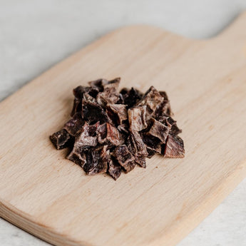 PAWFF's Beef Training Treats are hand cut into small, bite sized pieces, suitable for training.