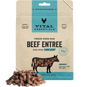 Visit Vital Essentials website to know more about Vital Essentials Freeze-Dried Raw Mini-Nibs Beef Entree Dog Food