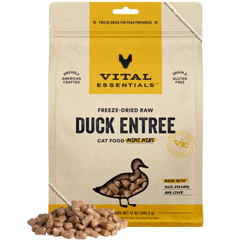 Visit Vital Essentials website to know more about Vital Essentials Freeze-Dried Raw Mini-Nibs Duck Entree Cat Food
