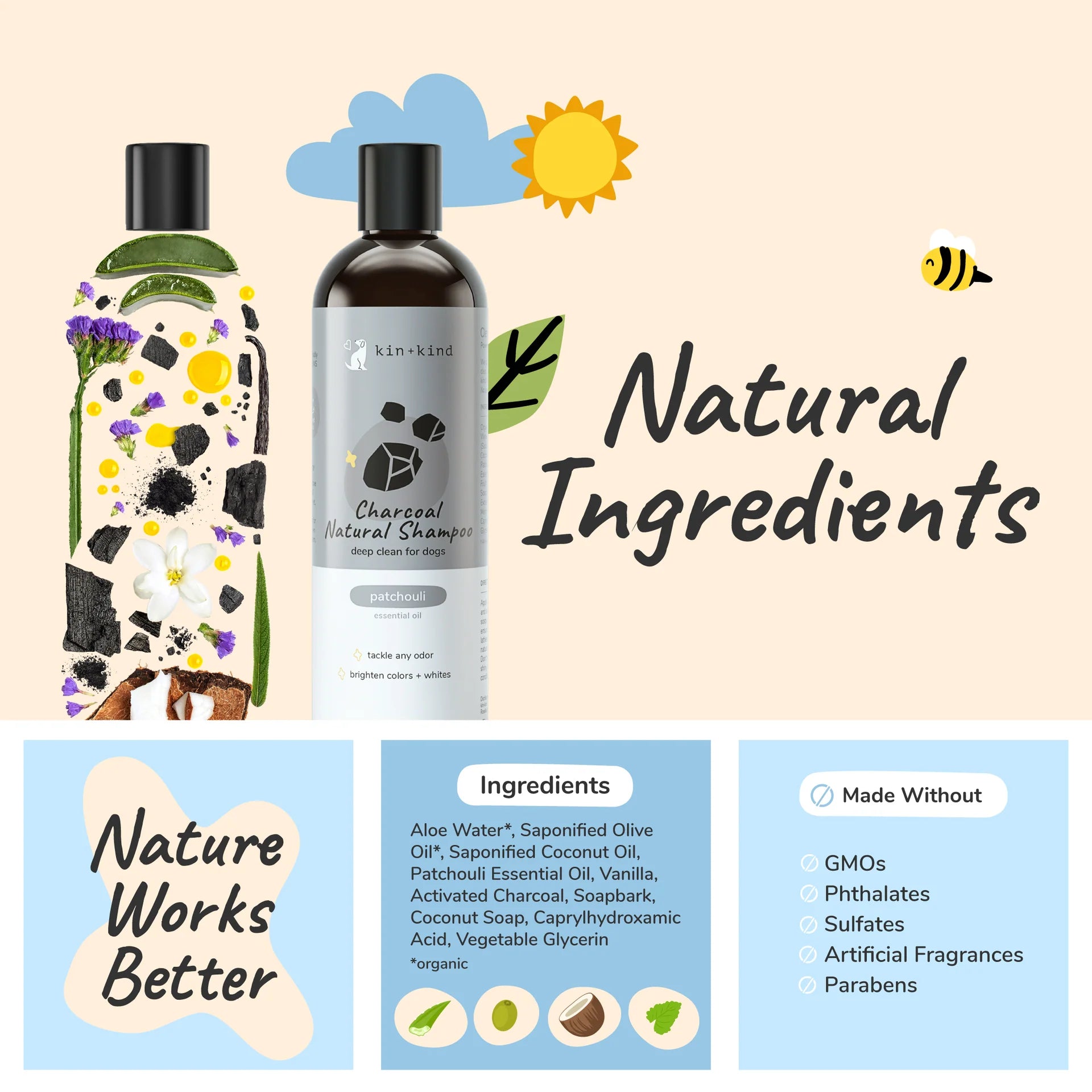 • Made in the USA: Every kin+kind bottle is lovingly mixed, labeled, and shipped by the hands of our employees paid a responsible, living wage in our certified USDA organic facility.