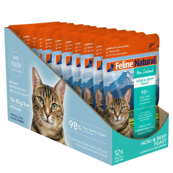 Feline Natural Grain-Free Hoki & Beef Feast Pouch Cat Food (12 Pouches)
