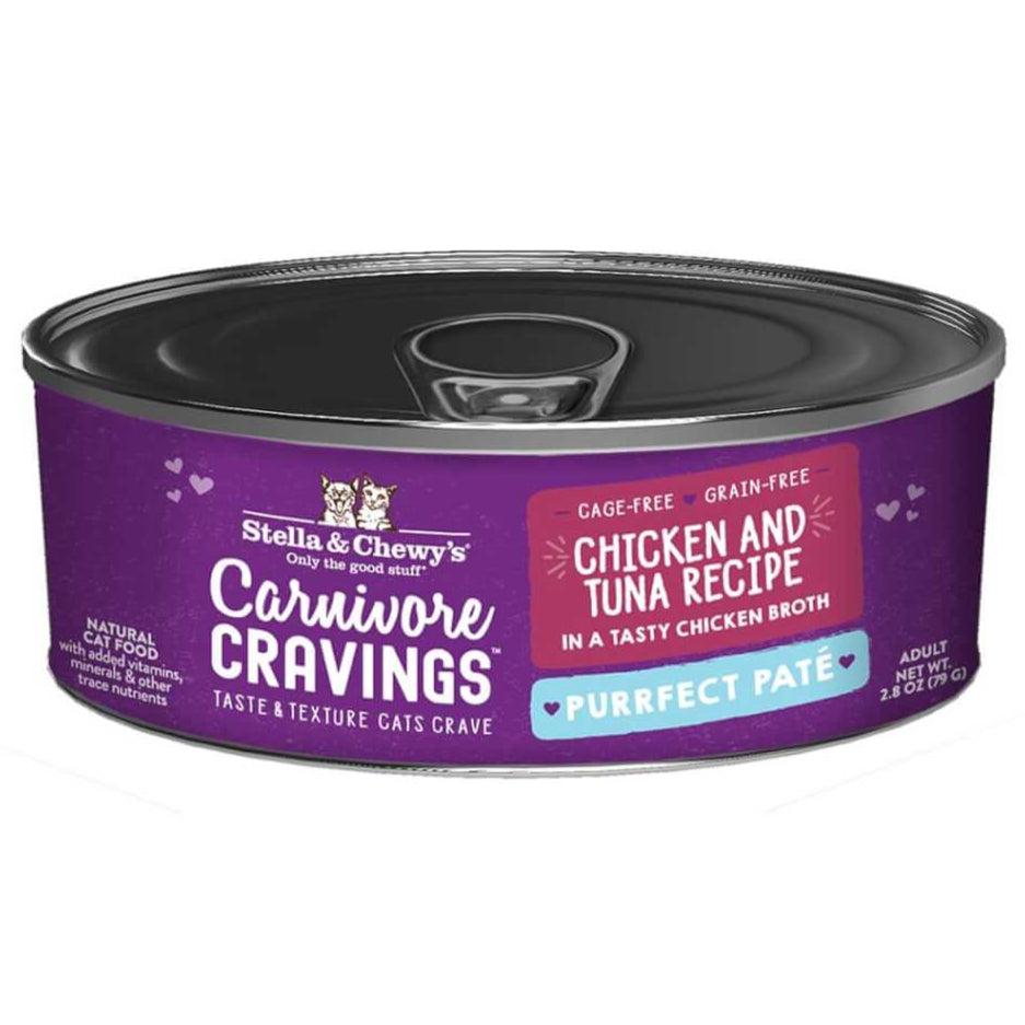 Visit Stella & Chewy Website to know more about Stella & Chewy's Carnivore Cravings Purrfect Paté Chicken & Tuna Recipe in Broth Wet Cat Food