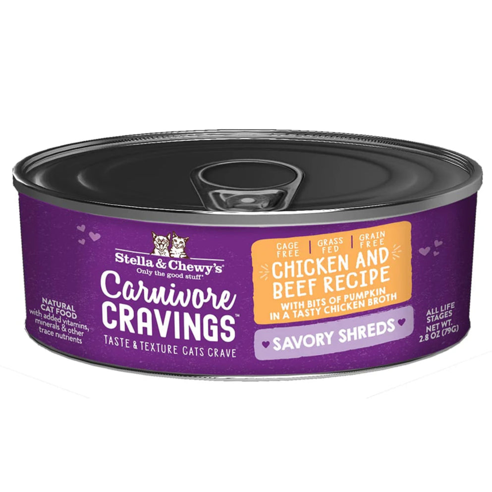 Visit Stella & Chewy Website to know more about Stella & Chewy's Carnivore Cravings Savory Shreds Chicken & Beef Recipe In Broth Wet Cat Food