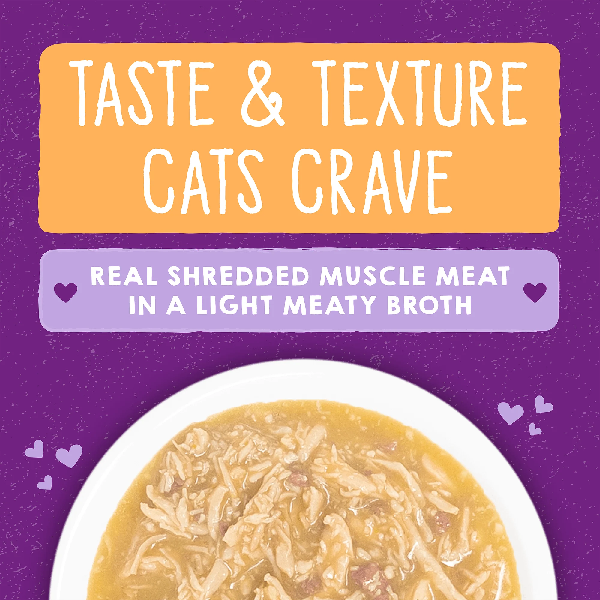 • Great texture — real shredded muscle meat in a light meaty broth