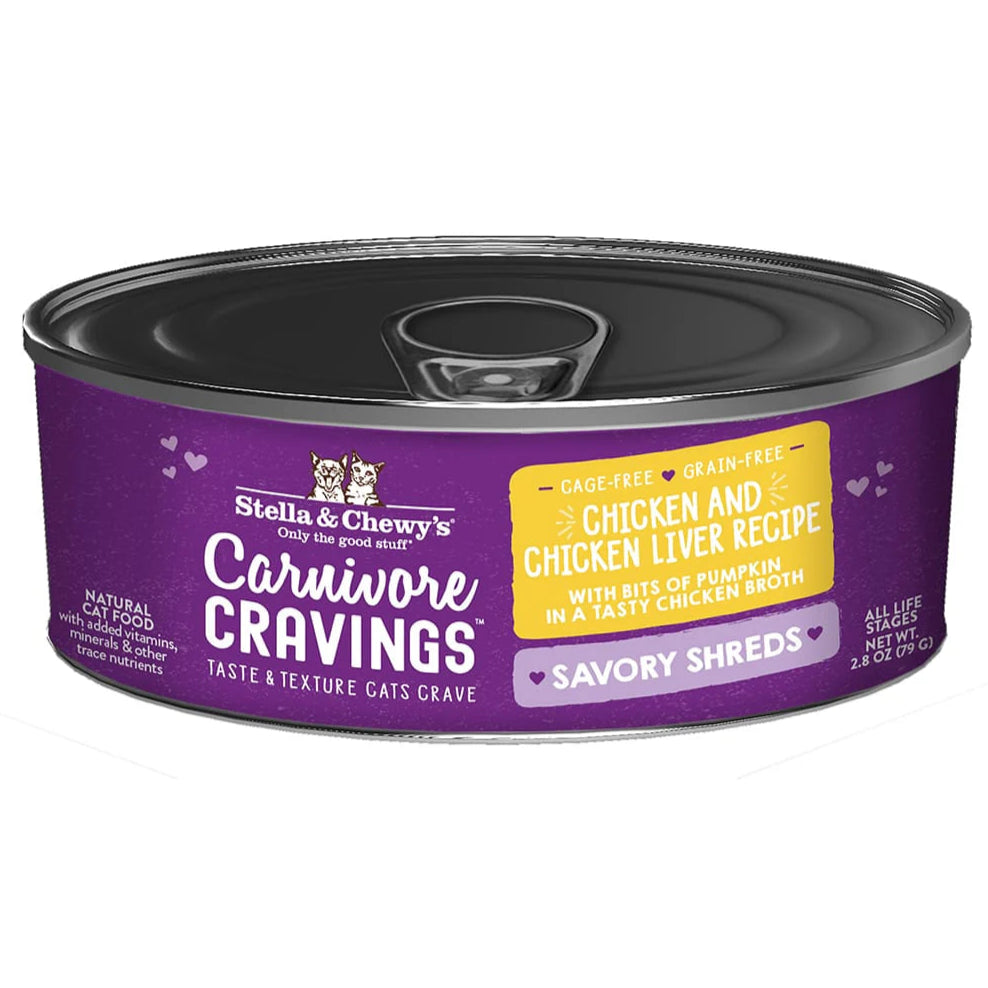 Visit Stella & Chewy Website to know more about Stella & Chewy's Carnivore Cravings Savory Shreds Chicken & Chicken Liver Recipe In Broth Wet Cat Food