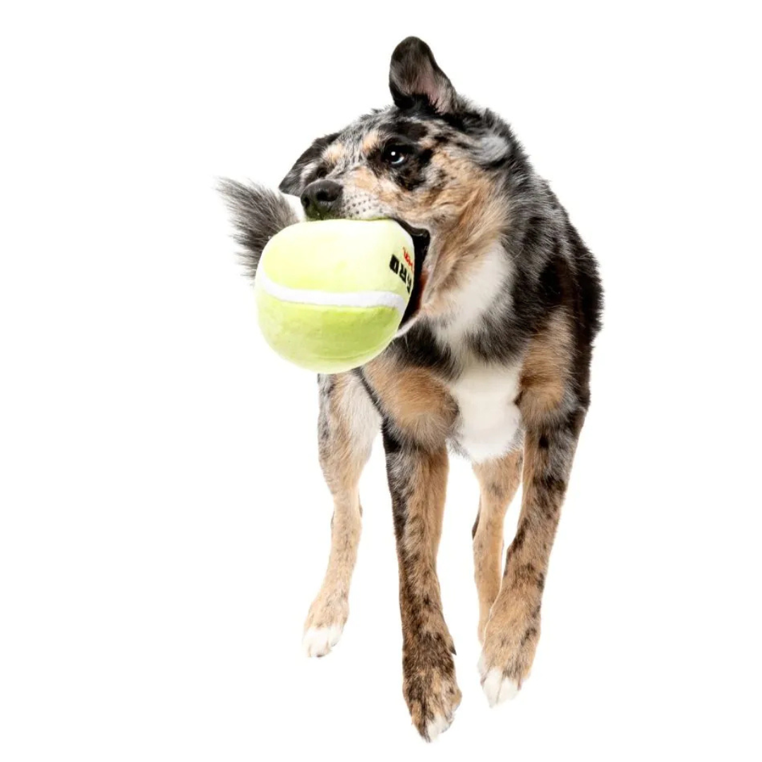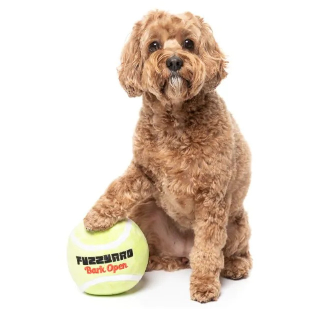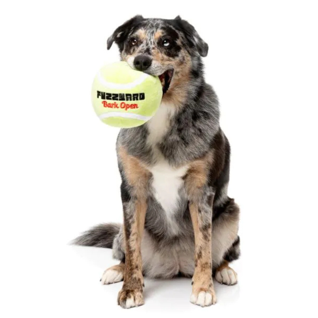 Game. Set. Fetch. The FuzzYard Bark Open Tennis Ball brings the tennis court straight to your pup’s playtime. Made from super-soft plush with a built-in squeaker, it’s perfect for chasing, chewing, or cuddling. Styled like a real tennis ball but oversized for extra fun, this toy is a grand slam for dogs who love to play hard and lounge harder.