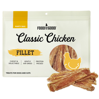 Discover the deliciousness of our Food For The Good Chicken Fillet Party Bag, crafted for the pets you love. These mouthwatering treats will have your fur babies jumping with joy and asking for more!