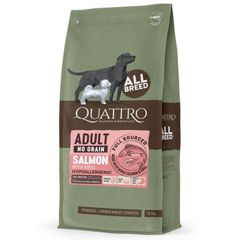 Visit Quattro website to know more about Quattro Freeze-Dried Meat Coated Adult All Breed No Grain With Salmon & Krill (Hypoallergenic) Dry Dog Food