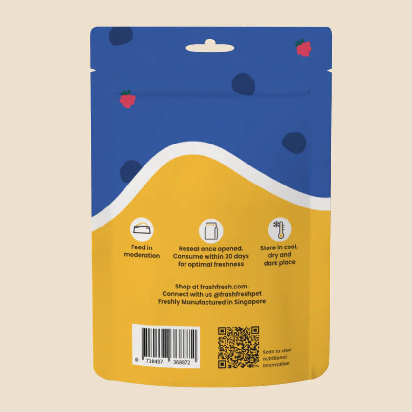 These wholesome "meatballs" treats are packed with protein and superfood goodness. They are crafted from 100% fresh, raw meat and blended with nutrient-rich fruits, berries, and vegetables. Gently freeze-dried to lock in flavour and nutrition, these bite-sized meatballs are perfect for training, rewarding, or simply showing your pet some love.
