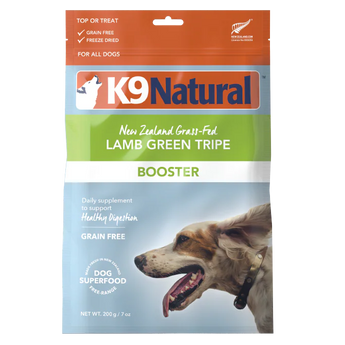 Sourcing only the highest quality New Zealand grass-fed, free-range Lamb Green Tripe, K9 Natural Green Tripe Booster aids in healthy digestion, nourishes skin & coat, assists immune response, and improves their overall health & well-being.