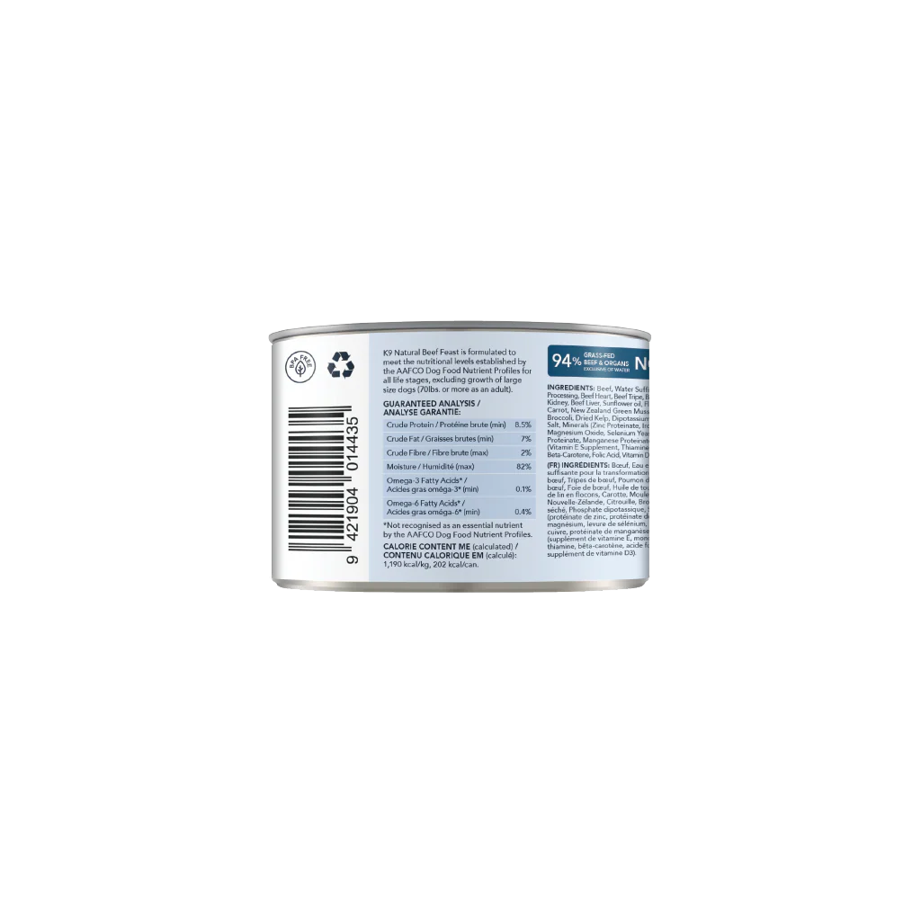 K9 Natural Grain-Free New Zealand Grass-Fed Beef Feast Wet Dog Food (12 Cans)