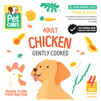 Visit Pet Cubes Website to know more about Pet Cubes Complete Gently Cooked Chicken Fresh Food