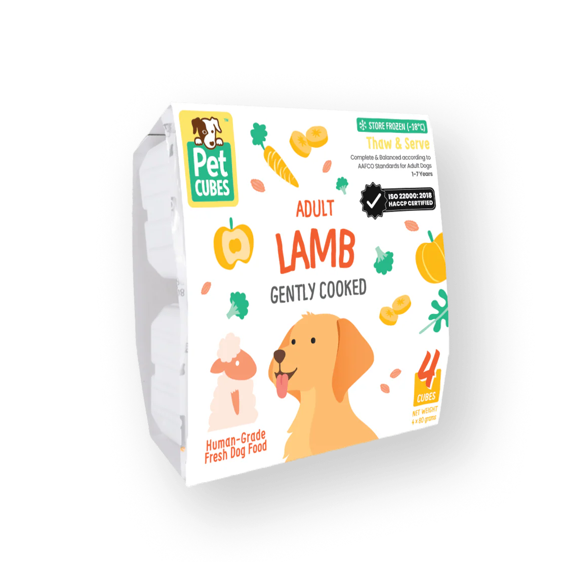 Visit Pet Cubes Website to know more about Pet Cubes Complete Gently Cooked Lamb Fresh Food