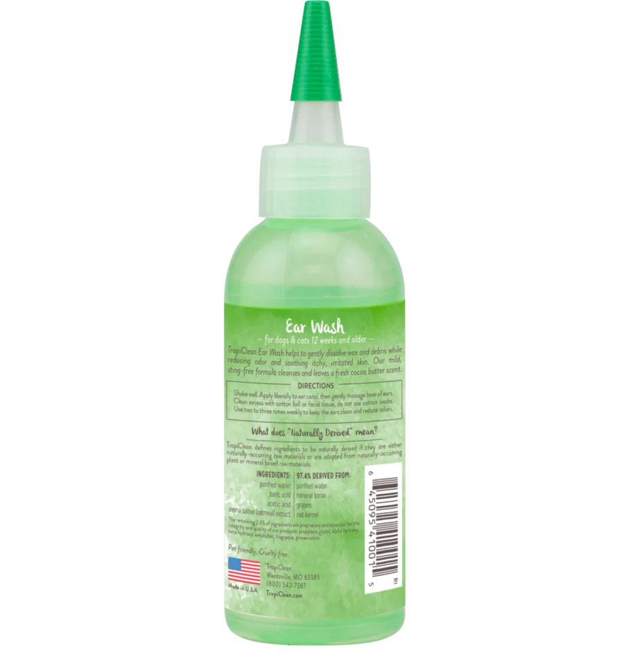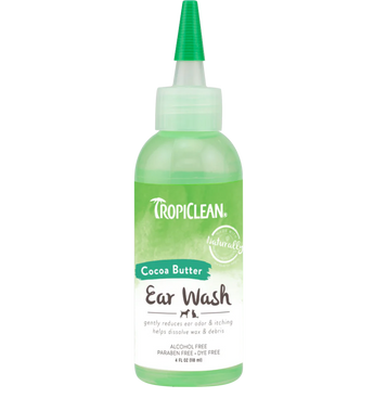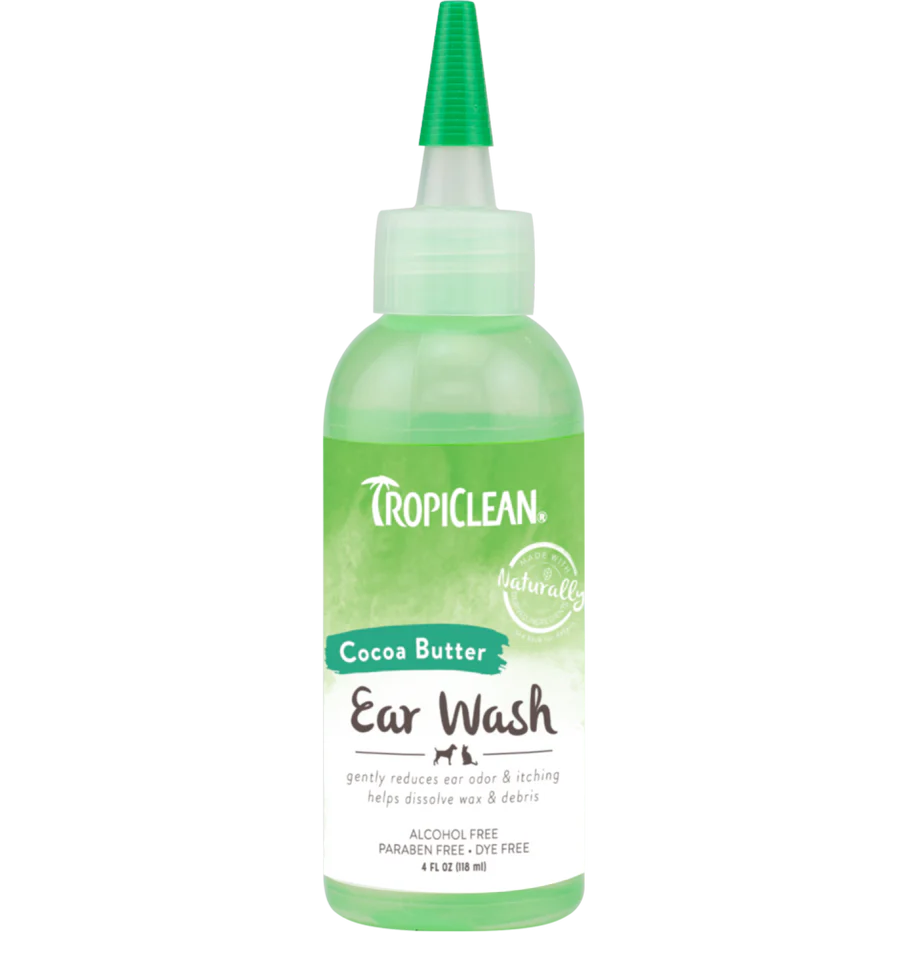 TropiClean Alcohol-Free Ear Wash for Dogs & Cats gently removes wax, debris, and odors while soothing irritation for clean, healthy ears. This mild, no-sting formula is enriched with cocoa butter and oats to moisturize sensitive skin, helping reduce itching and discomfort. Alcohol-free and safe for routine use, it’s perfect for keeping your pet’s ears fresh between grooming sessions. Simply fill the ear canal, gently massage, and wipe clean. Vet recommended and made with naturally derived ingredients.